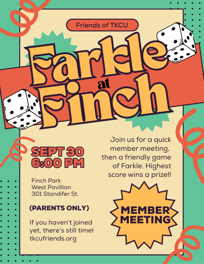Farkle at Finch: Parents, please join us for the first PTO Meeting of the year!