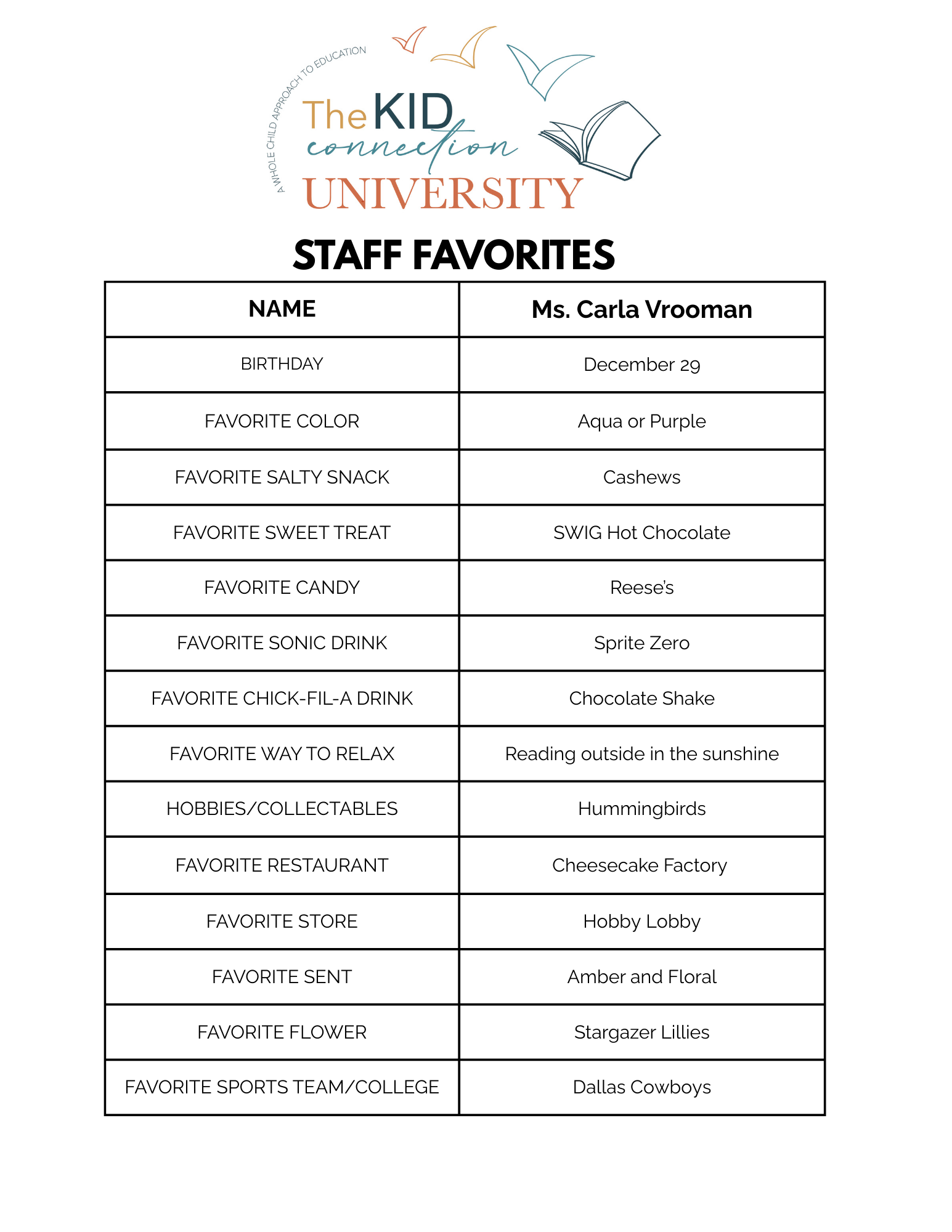 Ms. Carla (Group 6 Science) Ms. Carla Vrooman (Group 6 Science) Wish List View Wish List View Favorites List