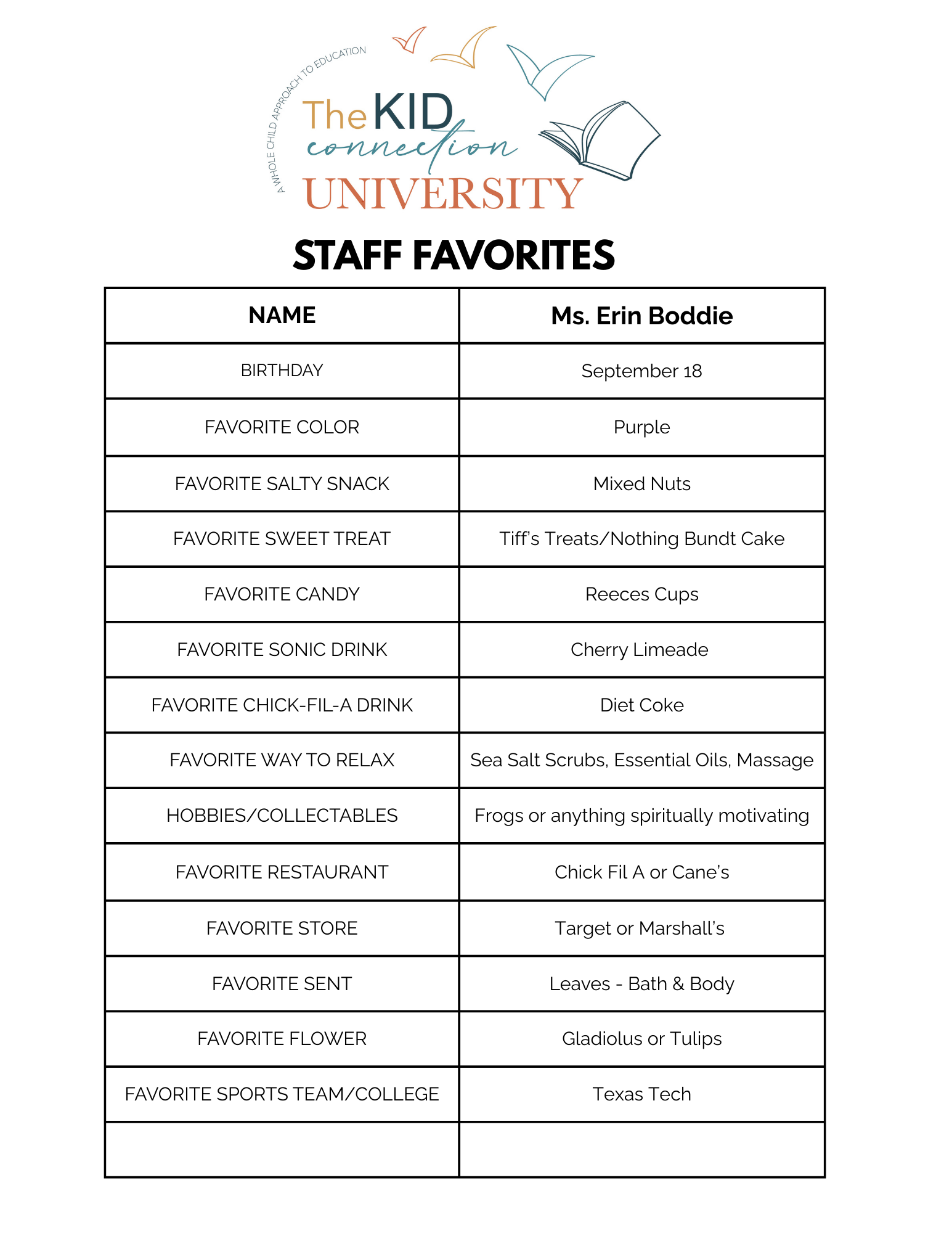 Ms. Erin Boddie (Small Group/Interventionist) Ms. Erin Boddie (Small Group/Interventionist) Wish List View Wish List View Favorites List